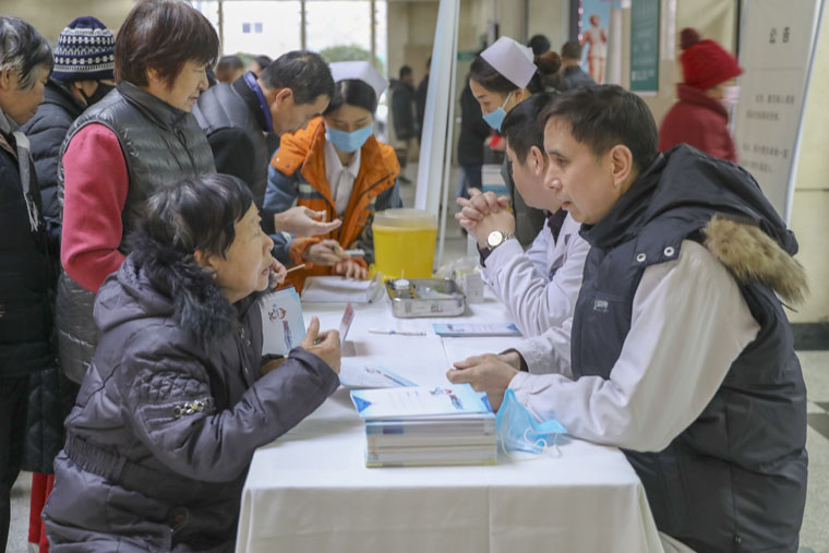 1224日上午8:30,在前期充分的准备和宣传后,内分泌科在门诊楼一楼大厅开展内分泌慢性疾病筛查义诊,重点对高尿酸血症和糖尿病进行筛查、问诊及健康教育宣传工作,科主任王富军、医生白磊在现场耐心细致地接受询诊,帮助患者进行生活方式的指导及治疗方案的制定。护士董雪菲、隽莹莹熟练地为众多患者测量尿酸及血糖。