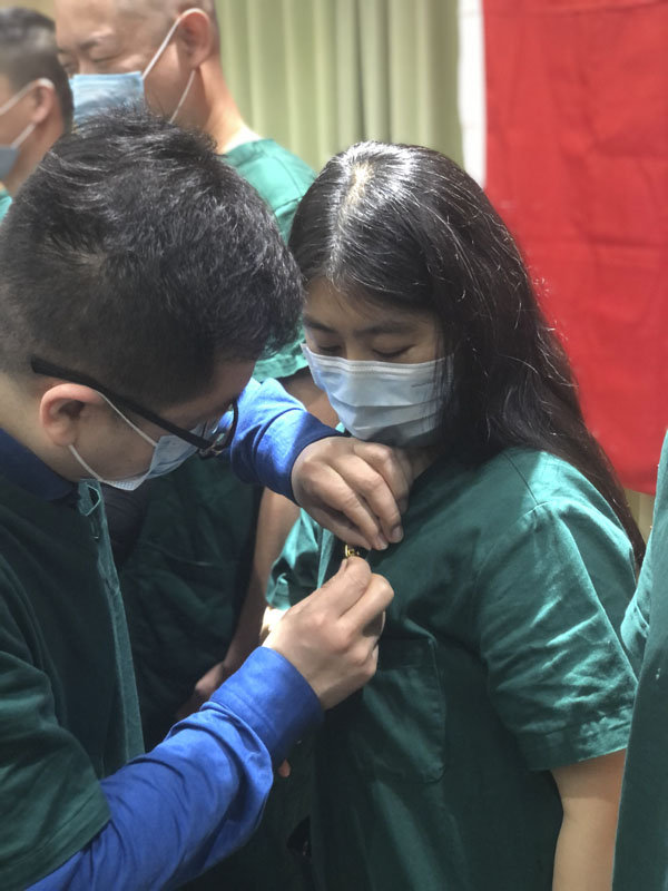 带着对党组织的崇敬和向往,21日,杨大运同志向中共河北援鄂医疗队党总支提交了入党申请书。212日,我院党委同意确定其为入党积极分子。36日,河北省援鄂抗疫第一、二批医疗队医疗救治二支部提出发展杨大运同志为预备党员,317 日,河北省卫健委机关党委审批通过,318日,河北省援鄂抗疫第一、二批医疗队医疗救治二支部接收杨大运同志为预备党员,杨大运同志在武汉一线对党庄严宣誓。