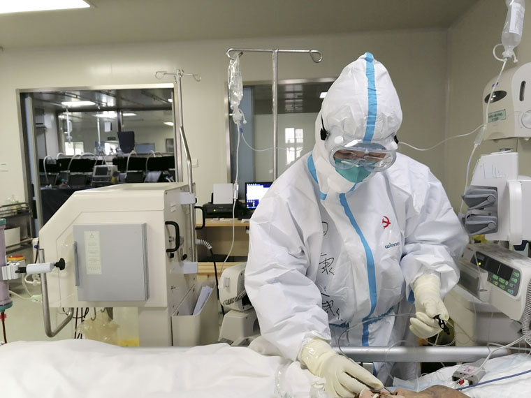 我先做好分组,几名重症专科护士担任组长,组员尽可能是一个单位或一个地区,再根据各队员的年资和能力进行微调,目的是让组员配合默契最大化,工作流程最优化,尽快形成最强的战斗力。重症医学科内的每一名护士都化身顽强的战士,我们手挽手、心连心,在抗“疫”战场工作最累、感染风险最高的重症医学科严防死守、浴血奋战。湿透的洗手衣、泡发的双手、满脸的压伤……这些在重症护理人看来都是最光荣的印记。我们不仅严守重症护理的标准底线,更在有限的条件下开展俯卧位通气、徒手置入鼻肠管、护理超声、连续性血液净化(CRRT)。河北重症护理人尽己所能,拼尽全力,在武汉抗“疫”战场上严防死守,死守着患者的生命安全,死守着重症护理的荣誉!