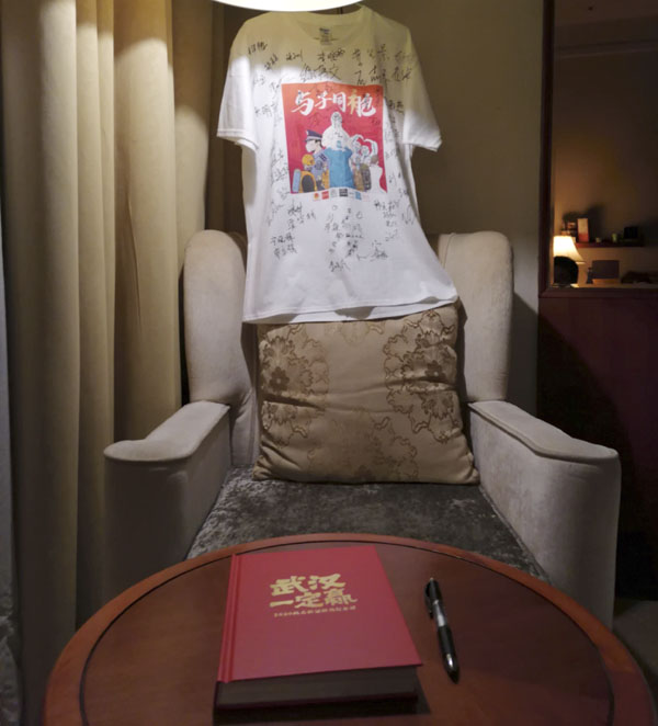 离别前两天,挂在申康康房间里签满战友签名的文化衫和写有留言的纪念册