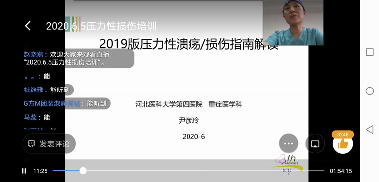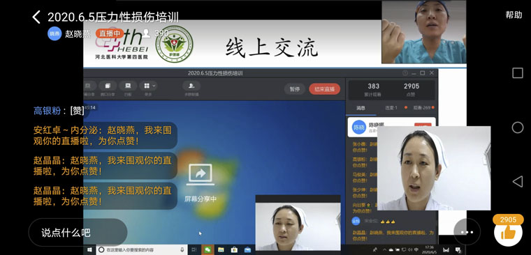 本次培训活动还设置了线上交流环节。多位听课护士长、护士就临床工作中遇到的关于患者皮肤压力性损伤护理问题在线向专家请教,尹护士长一一进行了指导交流。