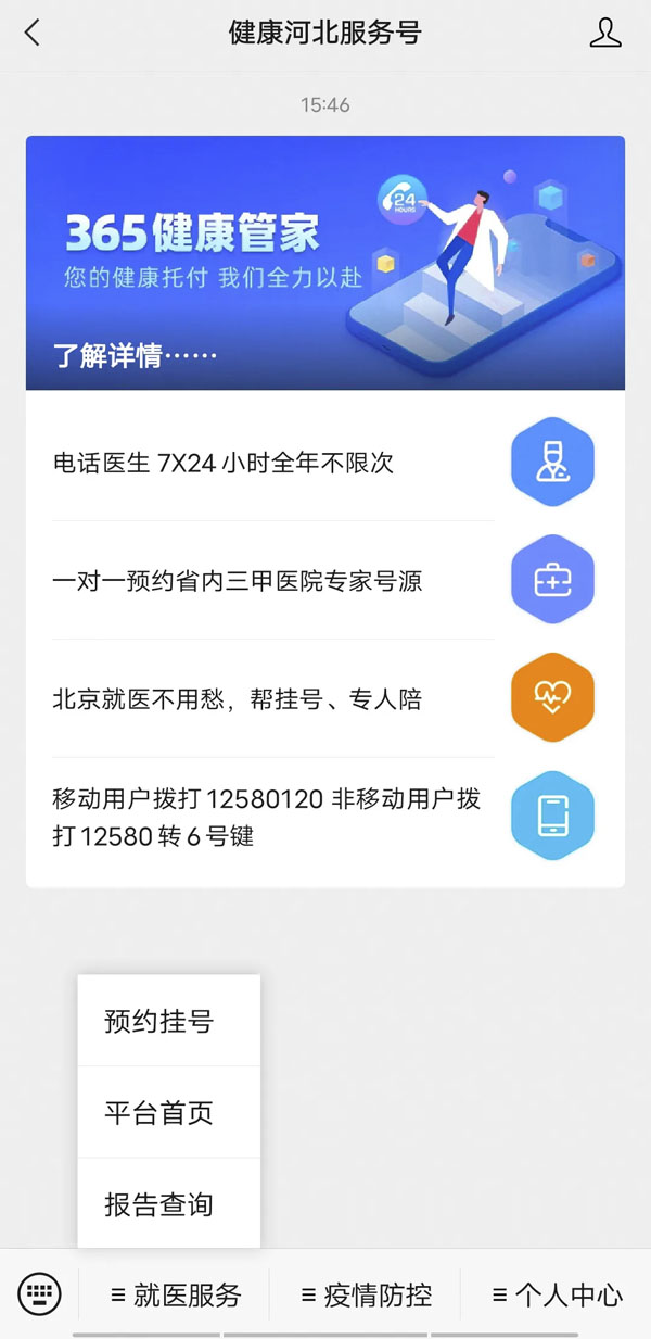 2. 健康河北微信服务号 → 选择“预约挂号”
