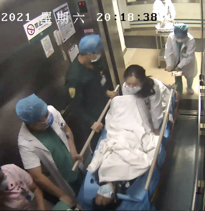 为配合孕妇转运及手术,杜丽佳医师将全身力气集中在上推胎头的手臂上,始终保持推举姿势,丝毫不敢懈怠,王胜普主治医师一路飞驰将孕妇转移至隔离手术室。同时,张惠欣主任医师、任玮娜副护士长赶往“战场”,助产士准备手术器械,麻醉师准备新生儿复苏设备,值班医师快速为孕妇办理住院手续……在大家的密切配合下,从急诊室至胎儿娩出仅用时10分钟!新生儿娩出后有轻度窒息表现,复苏团队立即给予有效正压通气。“小家伙有反应了!哭了!”新生儿有惊无险,平安降生。