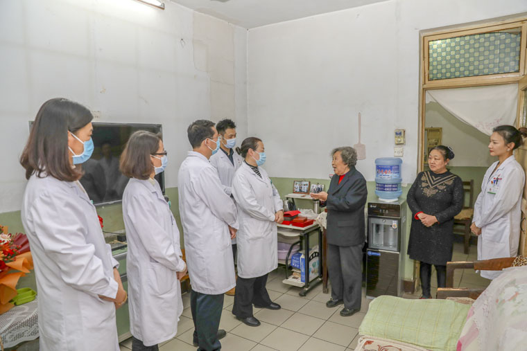 本次看望的7位老同志,年纪最小的已89岁高龄,最大的解玲同志98岁,大部分老同志的身体、精神状态良好,展现了积极向上的生活态度。在我院原党委书记、院长、麻醉学科奠基人张立生教授家,他和爱人一起与大家侃侃而谈,老人家对医科大学、第四医院的历史如数家珍,讲述了很多生动的历史故事。年纪最大的解玲同志身体也很好,她平时喜欢看报纸,一直关心着医院的建设发展,她拉着李晓玲副书记的手交流了医院的近况。92岁的李玉琢同志15岁参军,参加了抗美援朝等战争,现在依然身体健康、精神矍铄。她对党的坚定信仰和乐观向上的生活态度深深地感染了在场的每个人。李晓玲副书记向每一位老同志表达了关心和问候,提出遇到困难可以与医院联系,医院党委会尽力解决。