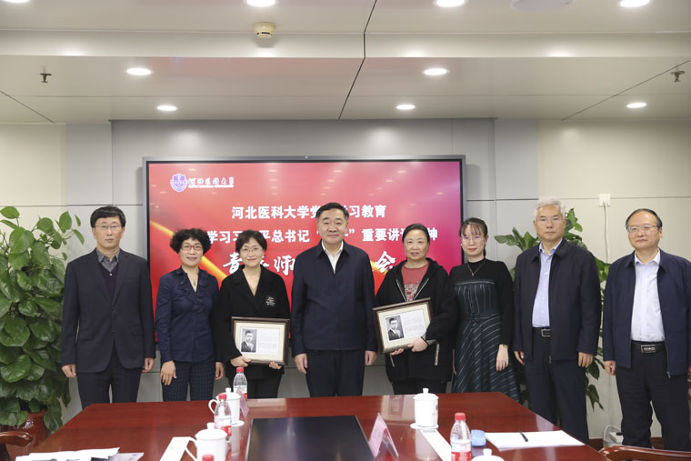 11月4日,河北医科大学在中山校区行政楼会议室举办学习习近平总书记“七一”重要讲话精神青年师生座谈会,邀请我院荣获“全国首批教育世家”的万力、万欣等讲述家族三代人爱党报国、服务人民的感人故事。河北医科大学党委书记翟海魂,校长王宝山,党委副书记倪铁军,党委副书记、纪委书记傅英会,相关职能部门负责人,教师、辅导员和学生代表,我院党委副书记李晓玲、放疗三科主任祝淑钗参加座谈。