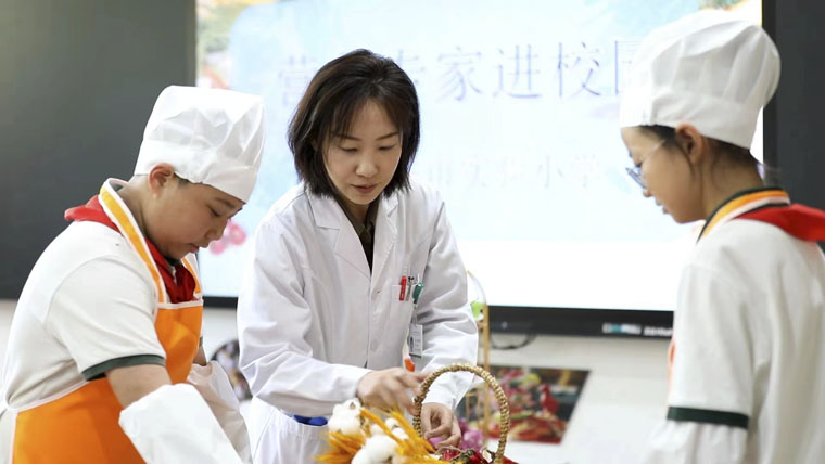 以全民营养周和“5·20”中国学生营养日为契机,517日和20日,临床营养科谢琪营养师分别为石家庄实验小学和保利启新小学的学生们进行了主题为“知食就是力量”的线下和线上讲座。小学生们身着厨师帽和厨师服,认真聆听讲解,通过将餐桌上的食物配成一份份营养均衡的餐食,深入学习了合理搭配一日三餐。谢琪营养师建议大家要少吃高脂、高盐、高糖的零食,希望本次活动能让“营养”的种子在学生们的心中结出硕果。