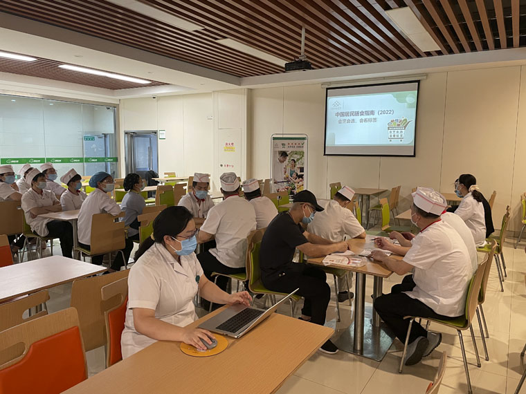 519日,临床营养科刘方芳营养师为我院膳食部厨师、配膳员解读了新版膳食指南,并就如何在烹调中减盐减油,使营养与美味兼得进行了重点讲解。厨师和配膳员们表示,本次专业讲解让我们对健康烹调技巧和饮食搭配有了更深入的理解,进而努力为广大职工提供更加科学健康的服务。