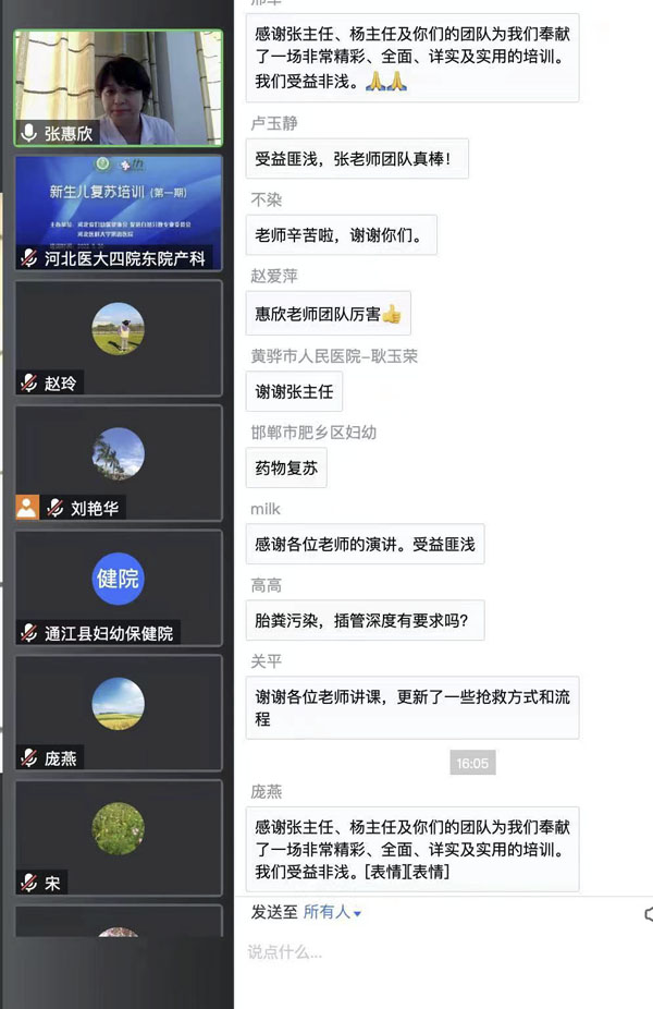 新生儿复苏是帮助和保障新生儿出生时平稳过渡的重要生命支持技术,也是产儿科等医护人员应该熟练掌握的最基本的临床技能。河北省卫健委自2019年起开展全省新生儿复苏规范化临床培训,相关工作由东院产科承担,以线下理论培训和临床技能一对一教学形式开展。在省卫健委妇幼处、我院领导的支持下,目前已成功开展4期全省新生儿复苏规范化临床培训,本次培训为第一期线上培训。