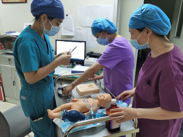 助产专科基地由两个院区产科组成,带教老师们紧紧围绕专科护士核心技能,选派临床经验丰富的助产士,传授正位接生、会阴裂伤缝合、新生儿窒息复苏、产钳助产等使用操作方法。因助产专业学员在一个月的实践中涉及到其他医院观摩,基地特意为学员增加一次额外的论文指导和文献检索课程。