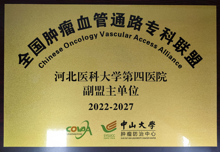 近日,由广东省抗癌协会肿瘤护理专委会主办,中山大学附属肿瘤防治中心承办的“全国肿瘤血管通路专科联盟成立大会暨隧道PICC置管新进展研讨会”在广州召开,在授牌仪式上,我院被授予全国肿瘤血管通路专科联盟副盟主单位,是河北省唯一入选的单位。据悉,该联盟由22个省份的138家单位组成。