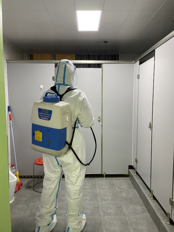 科室主任国丽茹从最初医院封控就吃住在科室,在一线坚守40余天,认真关注每一位住院患者的病情变化,积极协调相关检查及治疗。部分年轻的医护人员时有心理波动,国丽茹主任经常同科室人员谈心交流,疏导大家的焦虑情绪,使科室充满着温暖和友爱。为进一步减少感染机会并保障正常的医疗服务,医护人员在后勤保障处领来清洁用品和消毒工具,轮班进行保洁和消毒。