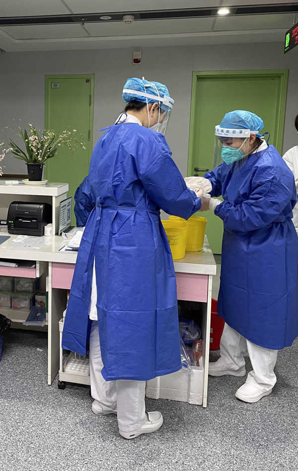 即使尽力防护,难免有医护人员出现阳性,但大家一致的信念是“只要身体情况允许,就坚持战斗”,有人倒下,就一定有人迅速返岗,只为门诊和病房的有序运行做出最大努力。徐晓雪副护士长带头参加医院外派的抗疫支援行动,她不怕苦、不怕累,圆满完成了任务。此外,科室承担着全科方面的住培和转岗培训任务,从未因疫情而中断,每周为学员至少安排两次线上学习活动,时刻督导学员,保证培训质量。