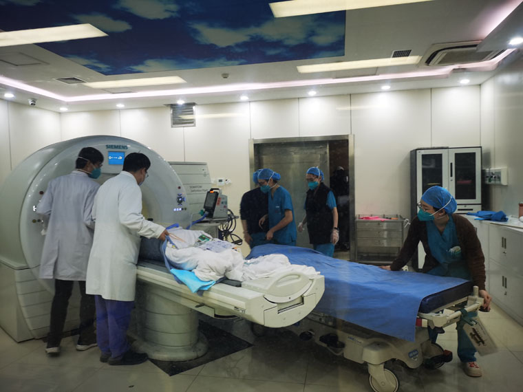 大年三十,CT磁共振科值班技师配合急诊科医生,迅速为重症患者做检查。