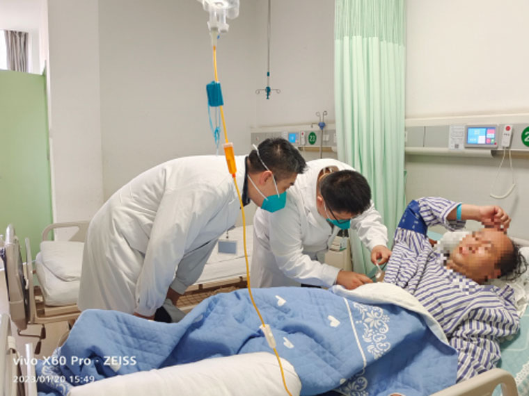 春节前夕,眼科医生为一名新生血管性青光眼患者行青光眼手术。