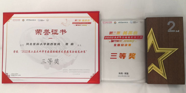 在“第二届大中华胃癌腹腔镜手术菁英赛”中,我院外三科贾楠副主任医师通过省区赛及北部大区赛的层层选拔,最终代表北中国赛区参加全国总决赛,与来自全国各地的13位临床外科医生同场竞技。各位选手带来各具特色的胃癌腹腔镜手术视频展示,以高水准的全程英文讲解,向国内外同道展示了代表中国中青年胃外科腹腔镜手术的能力与水平,得到季加孚教授、陈凛教授、徐泽宽教授、李国新教授等来自全国胃外科学界知名专家的点评与指导。贾楠医生获得三等奖的好成绩,充分展示了我院外三科在胃癌手术质控及综合治疗方面的实力。