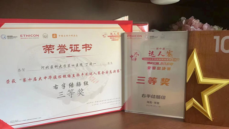 在“第十届大中华腔镜结直肠手术达人赛”中,我院外二科丁源一、马洪庆两位主治医师顺利通过河北省内海选、太行赛区决赛、北中国区决赛,作为仅有的两位获得一等奖的选手,代表北中国区参加全国总决赛。在决赛中,两位青年医师以全程英文讲解展示了典型手术视频案例,得到郑民华教授、兰平教授等来自全国结直肠外科手术领域知名专家的一致好评,分别获得结肠组三等奖的好成绩,彰显了外二科医师扎实的临床基础知识和精细的外科操作技巧。