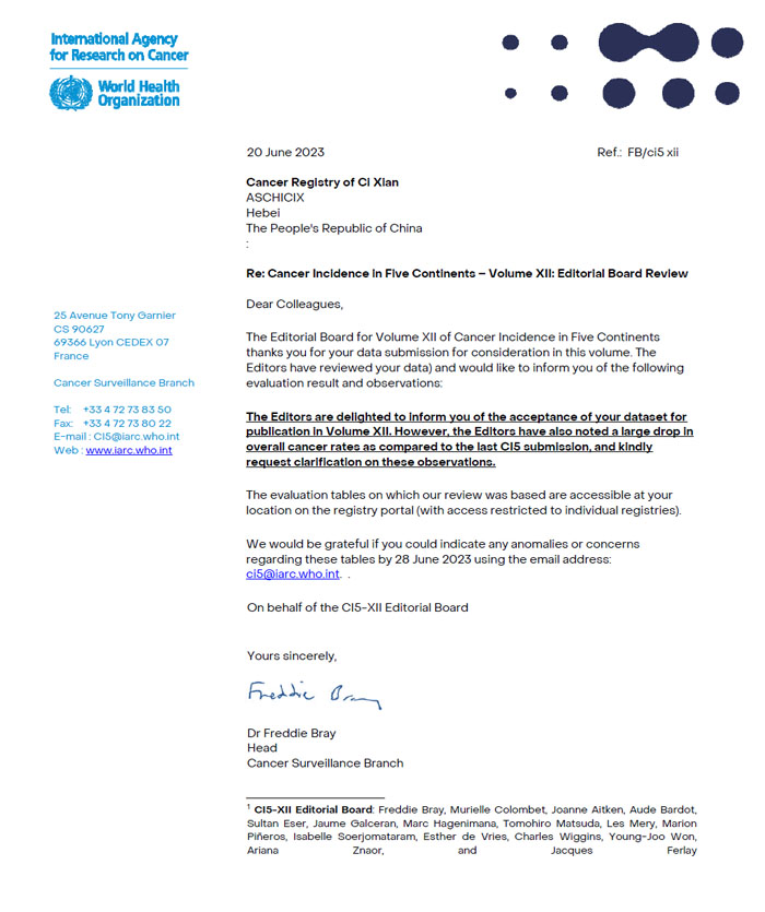 新突破!河北省14个肿瘤登记处数据被国际癌症研究机构(IARC)专著收录