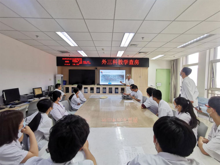 为进一步规范科室教学查房流程,强化师资教学意识,提升临床实践教学质量,促进教学同质化发展,近日,我院外三科以巨大难复性腹股沟疝为主题开展教学查房示范活动。李勇教授、范立侨教授及张志栋教授进行现场督导,杨沛刚主治医师担任指导老师,主管医师赵一杰、丁平安及其他青年医师和20余名住培学员参加。