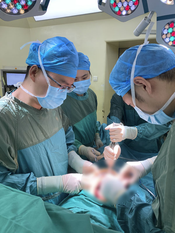 与此同时,另一台因车祸导致的颅脑外伤患者,也由急诊紧急推入东院区手术室。其间,患者突然剧烈呕吐。石蕴楚护士冒着职业暴露风险,将患者头偏向一侧,防止出现误吸,全然不顾令人作呕的分泌物。麻醉医生尽快使用吸引器进行口腔吸引,清理气道,并以最快速度麻醉,同时针对术中波动明显的各项指标及时给予纠正和处理。神经外科医生为患者消毒铺单,打开颅腔,清理血块,减轻压迫症状。手术室护士充分做好器械传递、物品供应、安全保证等工作,在大家的不懈奋战下,患者在接受左枕及后颅窝硬膜外血肿清除并复查CT后,返回病房。此刻已是第二日凌晨,手术室护士顾不上休息,继续进行房间巡视、耗材整理、物品归位、器械清洗等善后工作,等到一切收拾妥当,准备吃“晚餐”时,窗外的天空已蒙蒙亮了……