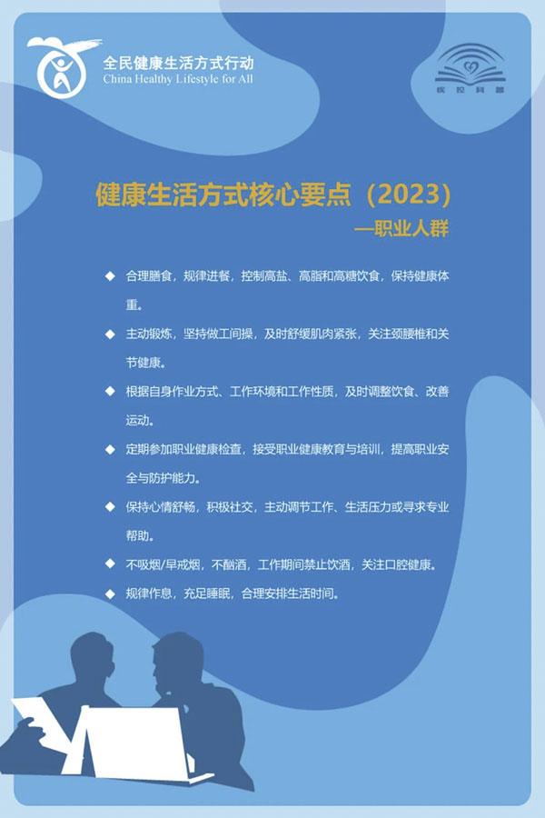 为加强基层慢性病防治和管理能力,提高公众健康素养和幸福感,全民健康生活方式行动国家行动办公室根据健康生活方式、生命早期营养与慢病防控的相关理论,结合我国不同人群当前存在的健康问题,组织专家从倡导文明健康生活方式的角度,制定了针对孕妇、乳母、婴幼儿、儿童青少年、职业人群及老年人的健康生活方式核心要点。