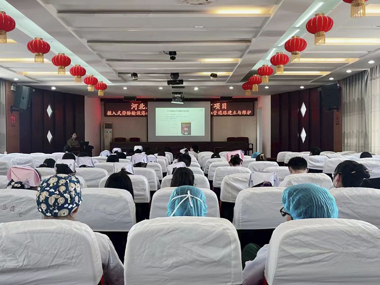 为进一步加强落实《河北省“适宜卫生技术推广示范县”建设方案(2023—2025)》要求,提高基层医院医疗、护理水平,近日,在河北省护理学会首席专家康琳主任和乳腺中心护士长王建新带领下,我院静脉治疗护理专家团队赴保定市望都县医院开展“植入式静脉输液港推广应用、恶性肿瘤患者静脉血管通路建立与维护”适宜卫生技术推广项目,县医院医护人员近百人参加了培训。