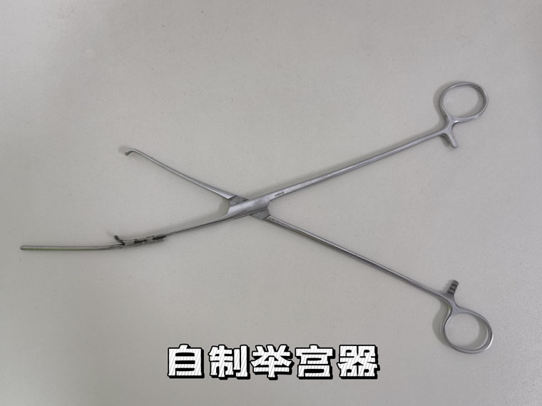 当时市面上的举宫器均为进口产品,价格昂贵且审批及购买周期漫长。进口举宫器设计复杂、拼接精密,手工制作并不现实。面对临床亟待使用的情况,我院妇科康山教授自行设计了一把简易的举宫器,即在现有宫颈钳的后叶上焊接一截子宫探针,在我院原修理室亲自动手制作。宫颈钳的特殊结构和探针的巧妙结合,使这把自制举宫器既方便满足举宫的要求,又不会造成子宫穿孔或钳夹住膀胱,迅速解决了腹腔镜手术的燃眉之急,提升了我院腹腔镜手术的水平和发展进程。在很长一段时间,这把自制举宫器立下许多功劳。