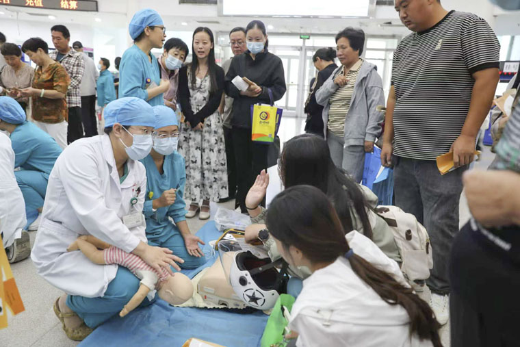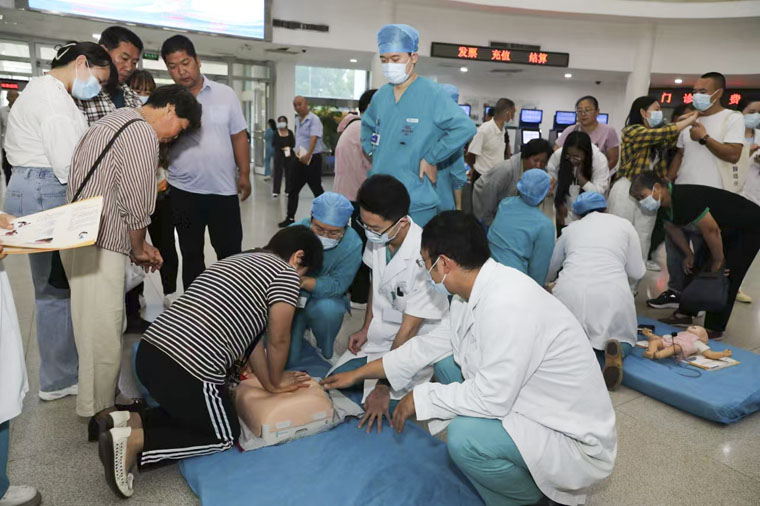 近日,在第25个“世界急救日”期间,东院区急诊科负责人韩梅带领科室医护人员,在门诊大厅开展宣传活动及心肺复苏急救技能的科普培训。本次主题为“急救与运动”(First Aid And Sports),旨在让更多人重视急救知识,掌握急救技能技巧,降低院外呼吸心跳骤停患者的致死率和致残率。