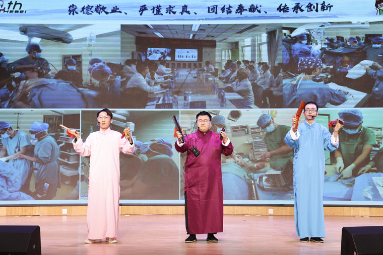下篇以“逐梦前行 扬帆起航内涵继续呈现精彩舞蹈《上春山》轻盈灵动,舞出春生机音乐情景剧《时间的切片》独具匠心,以艺术手法生动呈现病理医学检查的时代变革与薪火相传;‌快板《快嘴说“麻”保安康》诙谐风趣地展现了麻醉医生的仁心和温暖;小品《梅神医》妙趣横生,展现了医患间的信任和真情;舞蹈《党旗飘扬的方向》表达对党的忠诚与热爱配乐诗朗诵《医路新程》表达了对东院区医疗综合楼的期望;歌伴舞《我们的祖国歌甜花香》充满活力与赞美之情,以丰富的演绎形式为联欢会画上圆满句号