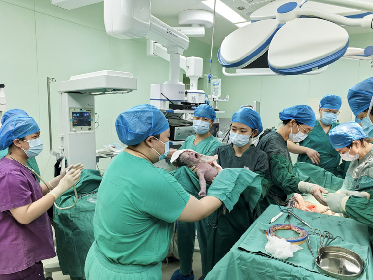 一直就诊于本部产科的于某,在我院助孕受孕得到双胞胎宝宝,胎儿极其珍贵,后经过卵巢过度刺激、多次住院保胎治疗,终于在春节期间剖宫产分娩龙凤胎,全家人的喜悦之情溢于言表。在东院产科,一名孕32周、患有中央型前置胎盘的孕妇突发产前大出血前来就诊,亟需施行急诊剖宫产手术。路月梅副主任迅速响应,与张惠欣主任医师携手努力,深夜紧急实施手术,将出血情况有效控制,新生儿顺利娩出,母子平安。