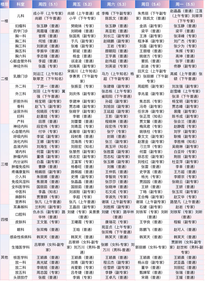 专家云集,假日无休!“五一”期间出诊时间表速览→