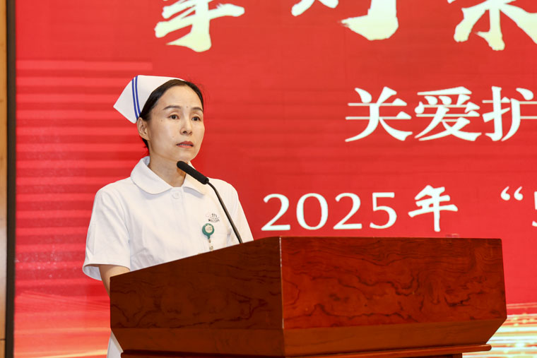 常务副院长何宏涛宣读表彰决定,同时向在护理岗位上矢志不渝、辛勤付出的兄弟姐妹们送上节日问候,激励全院职工以优秀护理人员为榜样,凝心聚力、奋勇开拓。他充分肯定了2024年我院护理工作在临床护理、教学培训、专科基地建设、科研科普等多方面取得的优异成绩。面对医院高质量发展的新机遇与新挑战,他对护理团队提出五点期望:一是坚持护理文化传承,以深厚的四院文化引领护理工作;二是深化护理服务内涵,持续提升护理质量与水平;三是加强护理人才培养,为护理学科发展注入强劲动力;四是借助信息化手段,提高护理工作效率与精准度;五是抢抓政策机遇,充分挖掘与提升护理服务价值。他号召全院护理同仁以更饱满的热情、更昂扬的斗志、更扎实的作风,护佑人民健康,推动医院高质量发展迈向新台阶。