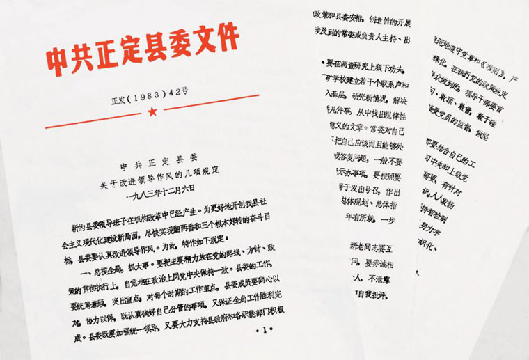 1983年12月6日,正定县委印发改进领导作风“六项规定”。(来源:《让群众过上好日子——习近平正定足迹》)