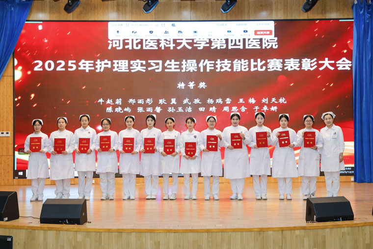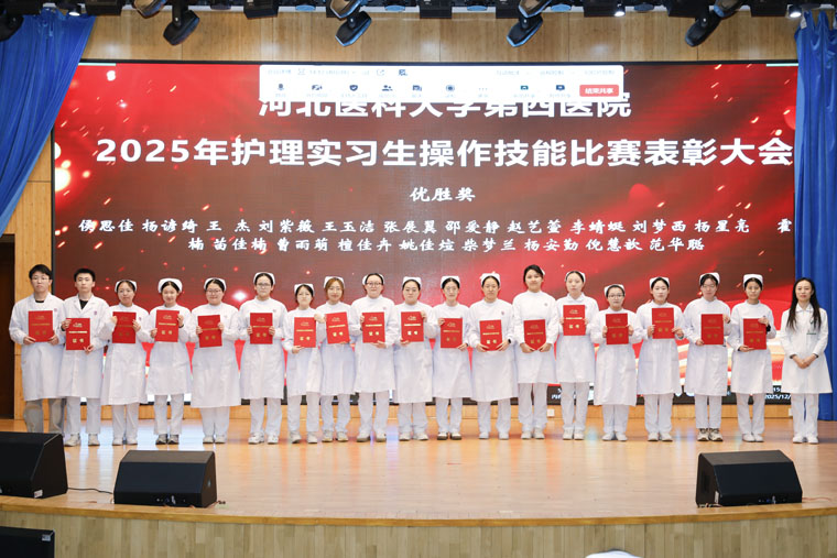 近日,护理教学办公室在本部新医技病房楼报告厅召开“2025年护理实习生操作技能比赛表彰大会”。护理教学办公室主任李志红、护理部负责人赵晓燕、比赛点评老师及全体师生共同参会,会议由护理教学办公室副主任范晓丹主持。