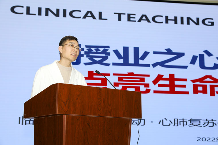 教务处副处长满炤熙随后勉励在场同学,麻醉学是守护生命安全的关键学科,而心肺复苏能力正是每位医学生必须紧握的“生命钥匙”——规范的心肺复苏操作能为心跳骤停患者争取宝贵的“黄金四分钟”。希望同学们以严谨态度认真研习,时刻铭记并践行“健康所系,性命相托”的医学誓言。