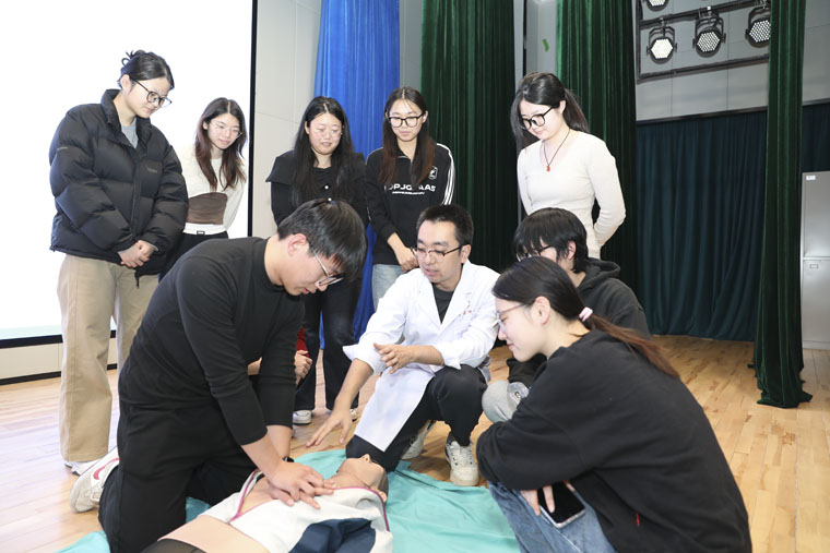 近日,我院麻醉学系和教务处联合麻醉学教研室、内科学教研室在东院区报告厅举办了心肺复苏公益培训活动,主题为“授业之心,点亮生命”。活动以2022级麻醉本科生的一堂内科学急救课程为主线,创新将临床理论教学、实操技能训练与社会责任培育深度融合,旨在打造一堂兼具专业性与人文温度的生命教育特色课程。