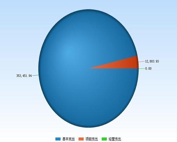 本单位 2020 年度本年支出合计 366,255.87 万元,其中:基本支出 353,451.94 万元,占 96.50%; 项目支出12,803.93 万元,占 3.50% ; 经营支出 0.00 万元,占0.00%。如图所示: