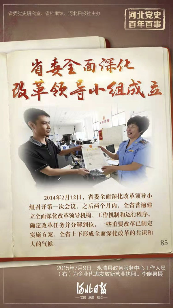 党史学习教育|河北党史百年百事七十八:省委全面深化改革领导小组成立