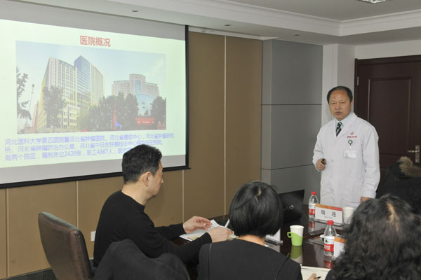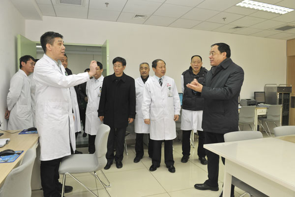 1月30日,河北医科大学校长崔慧先和学校党委常委、纪委书记傅英会等一行9人莅临我院进行工作调研。我院院长单保恩、党委书记段西涛等在院领导对崔校长一行的到来表示热烈欢迎,带领党办、院办、组织部、教务处、医务处等18个职能处室的负责人围绕医疗、教学、科研、安全、党风廉政建设等工作进行座谈讨论,并陪同崔校长等来到新医技病房楼考察。