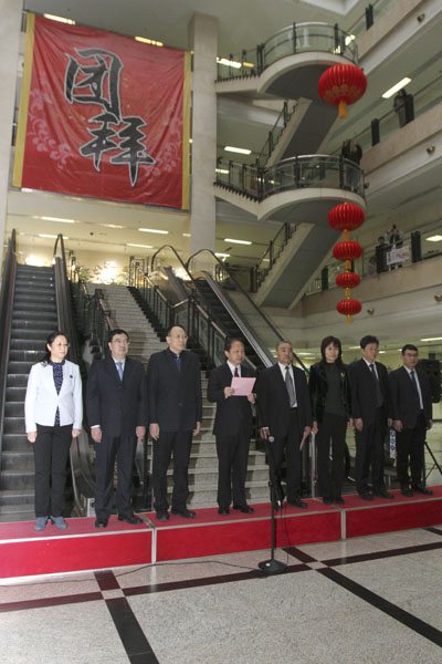 23日清晨,我院在本部门诊大厅举行了春节团拜会,向全院职工、学生、患者及家属拜年,全体在院领导参加。