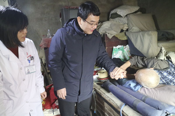 其后,他们来到行唐故郡村,得知我院领导前来,患者握住何宏涛副院长的手哽咽地说不出话来。其家人告诉我们,患者在宁养院免费领取止痛药已有一年时间了,医护人员多次上门的探访与关心支持让患者生活质量提高很多,老人一直想表达感谢,却没有机会,这次何副院长与张主任的到来使病人十分激动,其感激之情溢于言表。
