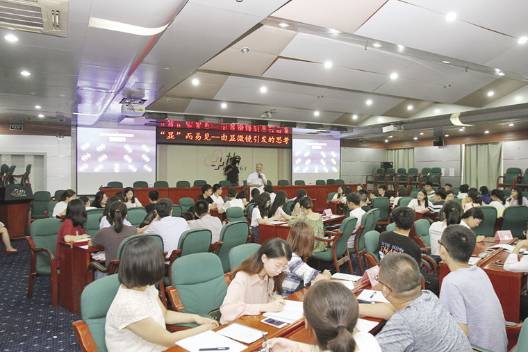 本次培训特色环节是我院前副院长、外三科李勇教授精心策划的“‘显’而意见,由显微镜引发的思考”主题活动,通过显微镜的功能构造,折射医务工作者的特质与品格,一组组轻松风趣的互动,仿佛一朵朵闪亮的火花,点燃了新职工的工作热情,引起他们决心恪守事业奋斗成才的共鸣。