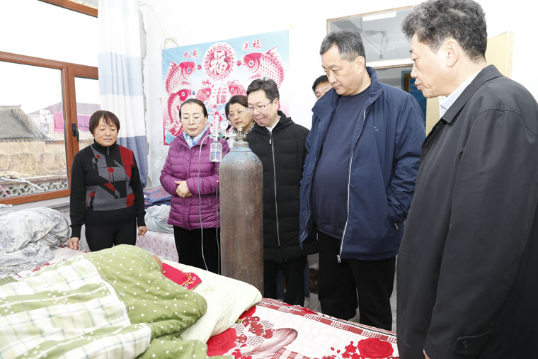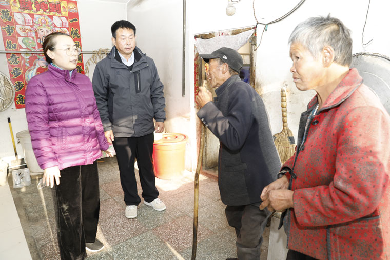 随后,全体院领导和各帮扶责任人在村干部、驻村工作队的陪同下,深入贫困户家中走访、慰问。初冬的隆化县,气温已经降至零下。天气虽然寒冷,但是挡不住帮扶责任人的工作热情。院领导和帮扶责任人深入自己结对帮扶的困难群众家中充分对接,做到互相知晓、互相熟悉,带着责任、带着真情走“亲戚”。每到一户,对贫困户嘘寒问暖,认真倾听帮扶对象的困难和心声,询问他们的生产生活、医疗健康以及子女上学情况,宣传扶贫政策,探寻致富门路,提出帮扶建议,送去了全院干部职工对贫困群众的关怀和温暖。在走访慰问中,听说村民张鹏87岁的老母亲患脑血栓病卧在床时,李晓玲副书记和徐金升、刘运江、彭利三位副院长来到病床前,向家属仔细了解了病情,提出了治疗建议,并指导家属做好护理工作。不少贫困户激动得拉住院领导的双手,感激之情溢于言表,“感谢党的扶贫政策、感谢医大四院的帮扶,房子建起来了,家里条件改善了,生活越来越好了。”