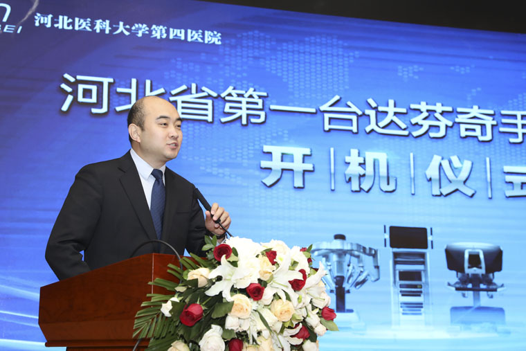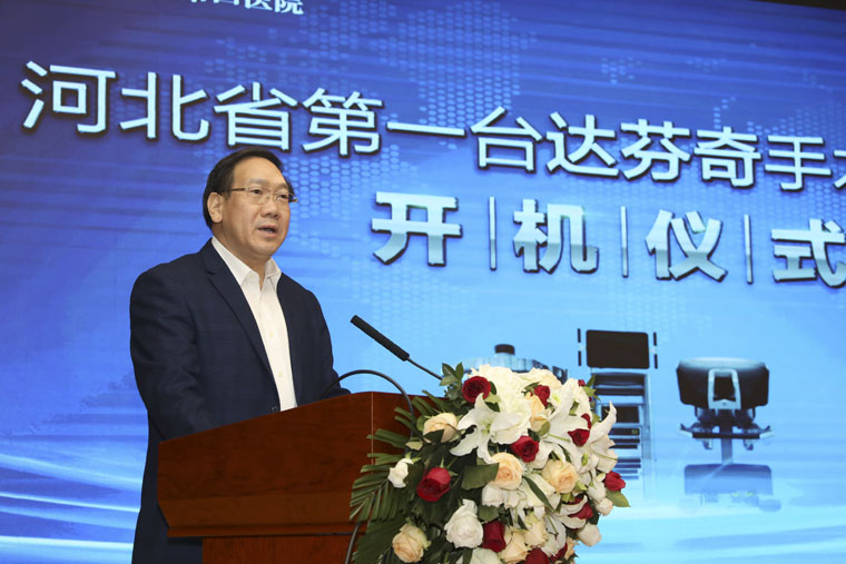 单保恩书记代表我院全体职工向各位领导、专家、同仁的到来表示热烈欢迎,并重点介绍了我院购置的这台最新一代达芬奇手术机器人的特点、优势、以及未来手术的发展趋势,希望以这台达芬奇手术机器人的正式启用为契机,加强专科建设与合作交流,保持创新动力,不断提高医疗服务能力和水平,为提升我院乃至河北外科专业技术实力、更好地为全省人民健康服务做出贡献。