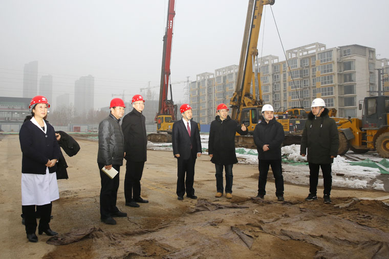 1月17日下午,我院党委书记单保恩、纪委书记李立平、副院长耿翠芝一行到东院区医疗综合楼(河北省癌症中心主楼)施工现场进行视察,听取施工汇报并指导工作。