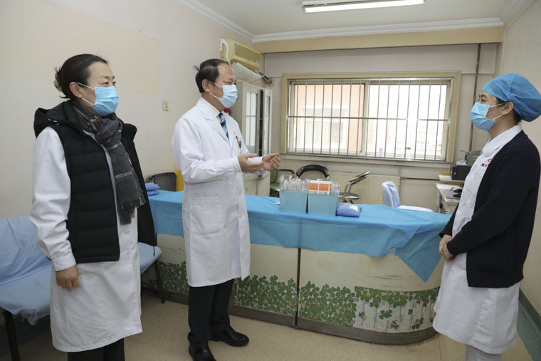 申康康、单梅和杨大运、齐战两对夫妇是我院双职工,疫情发生以后,他们两家都是一位奔赴前线,一位在本职岗位上坚守,都为疫情防控工作作出贡献。单保恩书记一行先后来到申康康、杨大运两位职工家属单梅和齐战所在科室,与他们亲切交谈,关切地询问他们当前的工作和生活情况,以及需要协调解决的困难。对前线队员的工作给予充分的肯定,向家属对前线疫情防控工作的鼎力支持和坚守医院工作岗位、坚强照顾后方家庭的默默付出表示感谢,并送上慰问品。