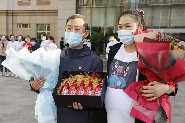 单保恩书记看到亲人回家十分高兴,他代表院党委向队员及家属致以最崇高的敬意和最衷心的感谢。单书记说:“在党和同胞最需要的时候,你们作为河北首批援鄂医疗队员,抛家舍业、挺身而出,夜以继日地奋战在武汉抗击疫情第一线,圆满出色地完成了救援救治任务,还把四院人的好品质、好作风、好形象留在了武汉。在你们身上,展现了服从服务大局的政治站位、吃苦耐劳连续作战的拼搏精神、尽心尽力不畏艰险的担当精神,传递了河北人民对湖北和武汉人民的深情厚谊,彰显了医者仁心和人间大爱,你们是我们四院的骄傲,全院职工都为你们感到骄傲和自豪。”