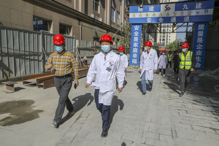 单书记强调,在疫情防控下要全力完成基建项目的建设工作,确保南楼病房和综合楼图书馆、办公区尽快投入使用,在保证施工质量和进度的同时也要做好环境防护和噪音防护,确保医院建设发展同时提高患者的就医体验。