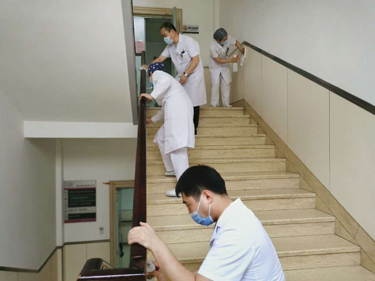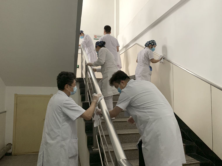 东院的卫生区包括诊区、病区、教学楼、大厅、步行梯、公共通道、职工食堂、花园绿化带等不同区域,场地分散,任务繁多。东院党办室、工会和后勤保障处结合科室分布、工作性质、党员人数等具体情况,为各党支部划分了各自的责任区,分片包干,分头负责。