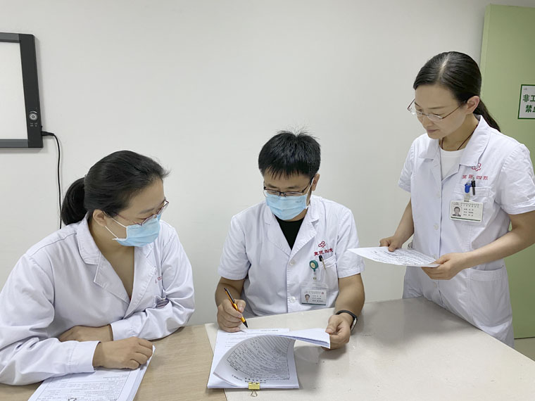 左二为赵喜娃副主任医师,左一为王娜主治医师