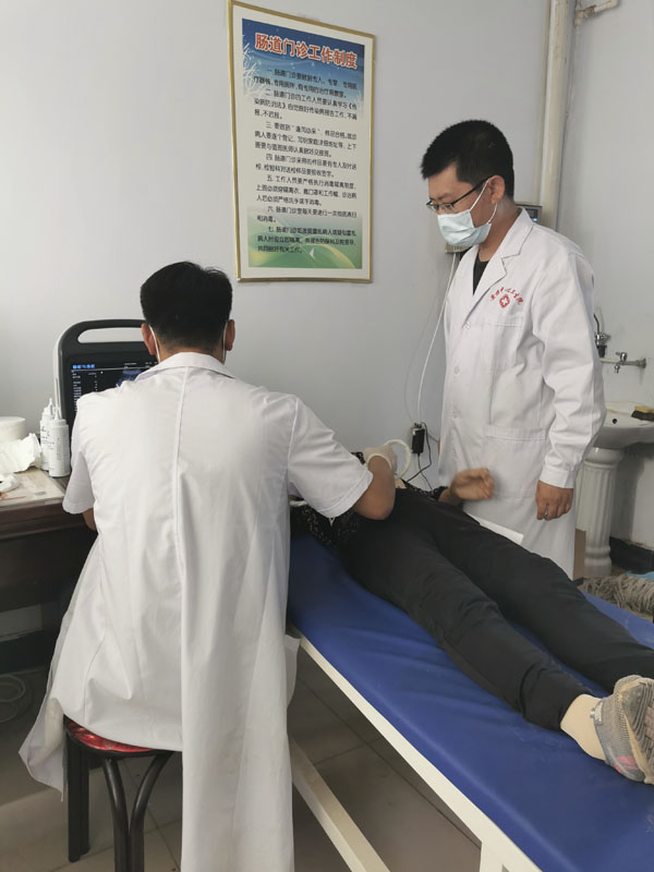 88日,乳腺癌早期筛查工作正式启动,考虑到相关工作人员、志愿者很多都未从事肿瘤相关专业,对乳腺癌的相关知识了解不全面,帮扶小组成员先对其进行了专业知识培训及动员准备工作,针对后续面向基层百姓,浅显易懂的从乳腺癌发病率、预防、早诊、早治、治疗方案等方面做了详细讲述,为本次筛查活动良好开展打下了坚实基础。816日,癌症早筛工作在黄旗镇卫生院拉开序幕,当日就对镇下辖18个村子的80余名高危患者进行筛查,除进行初步的问诊、流行病学调查、体检等工作外,还对高危患者及查体触诊不满意患者进行了免费的乳腺及淋巴引流区彩超检查,发现疑似乳腺癌术后腋窝淋巴转移患者1例,乳腺结节BI-RADS 31例,需进一步随访观察。